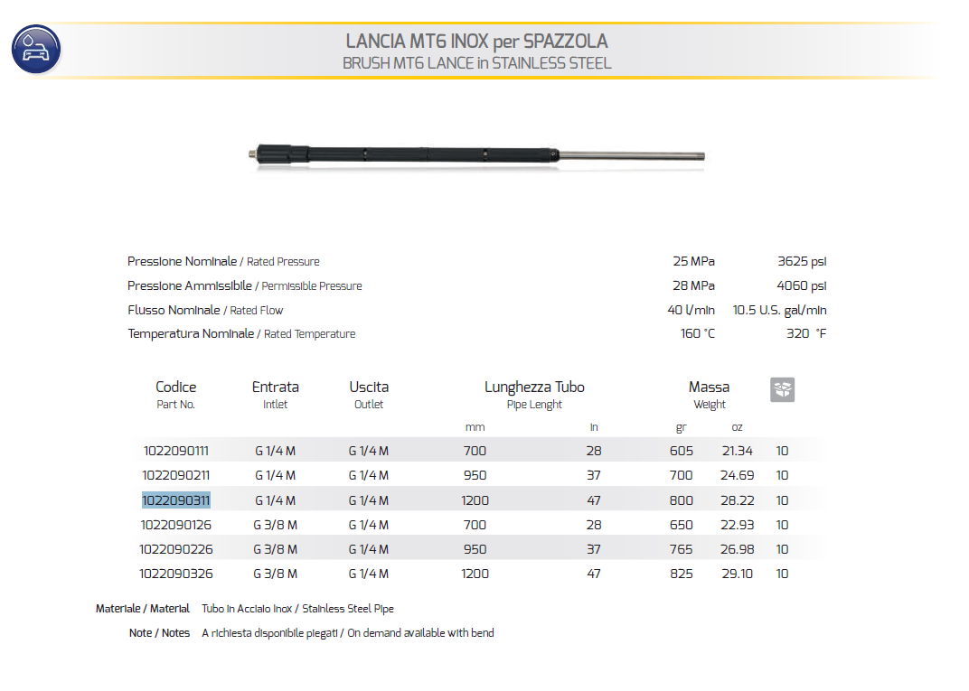 MT6 stainless steel lance covered