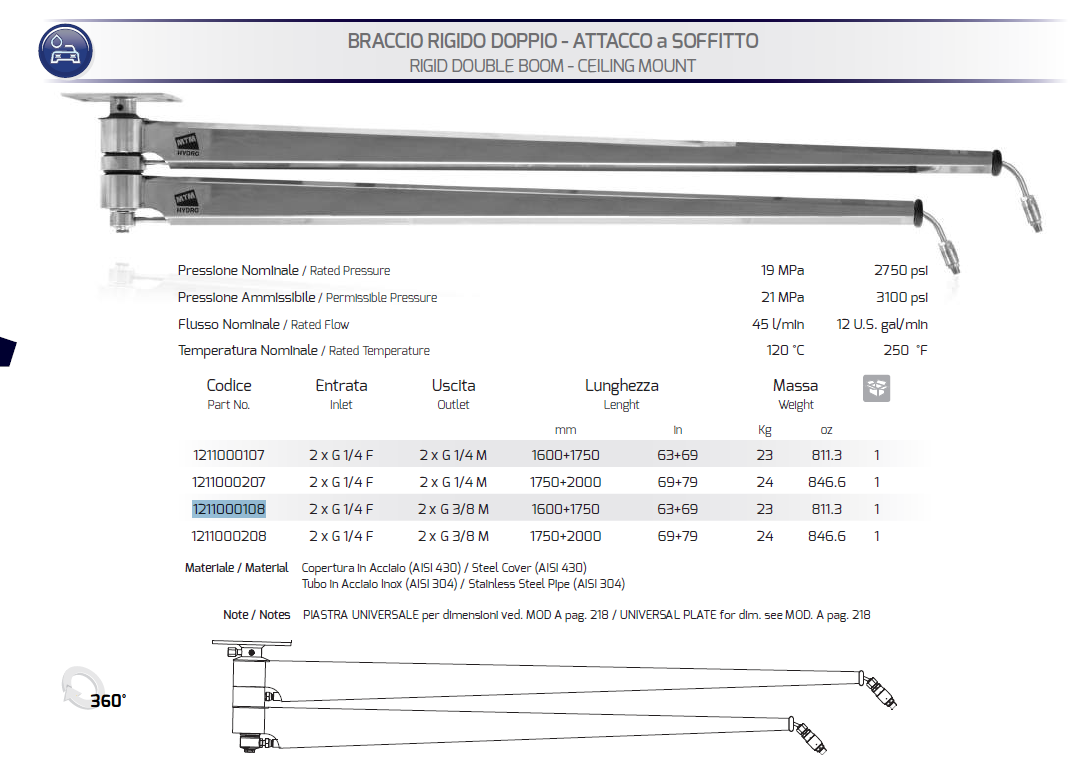 Rigid rotating armMaterial stainless...