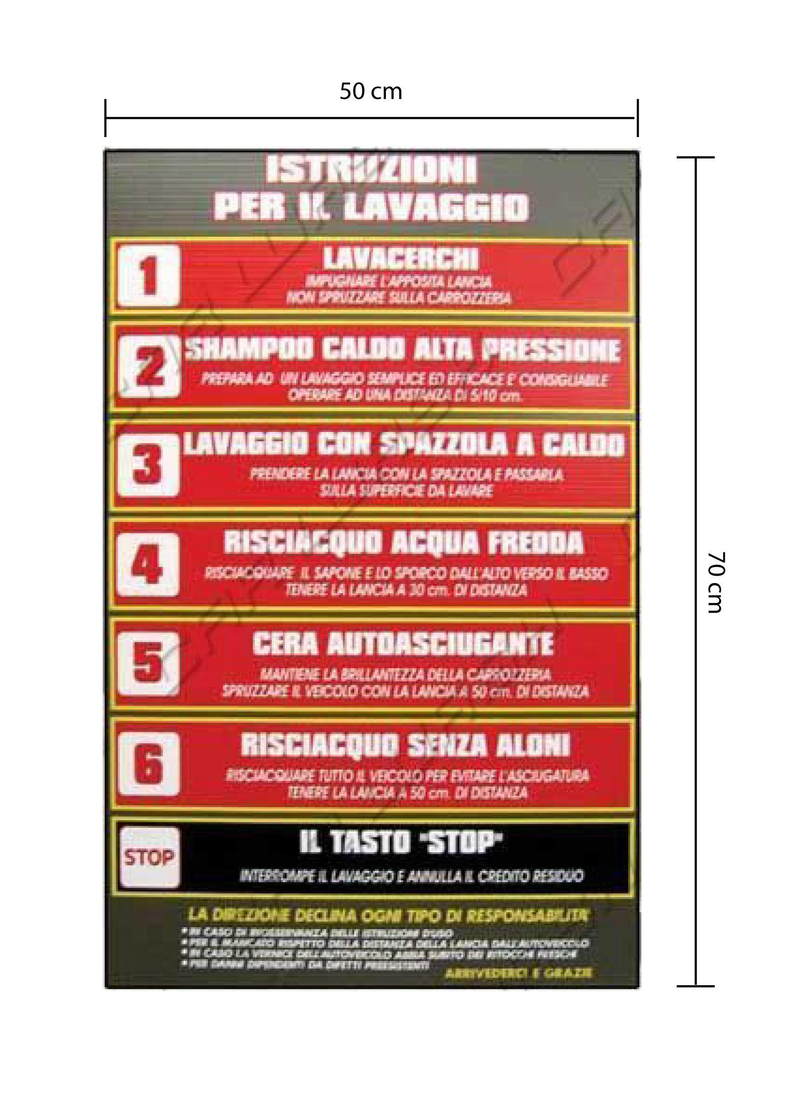 Adhesive signboard of instructions and guide to the 6 washing programs. Can be placed on tracks
