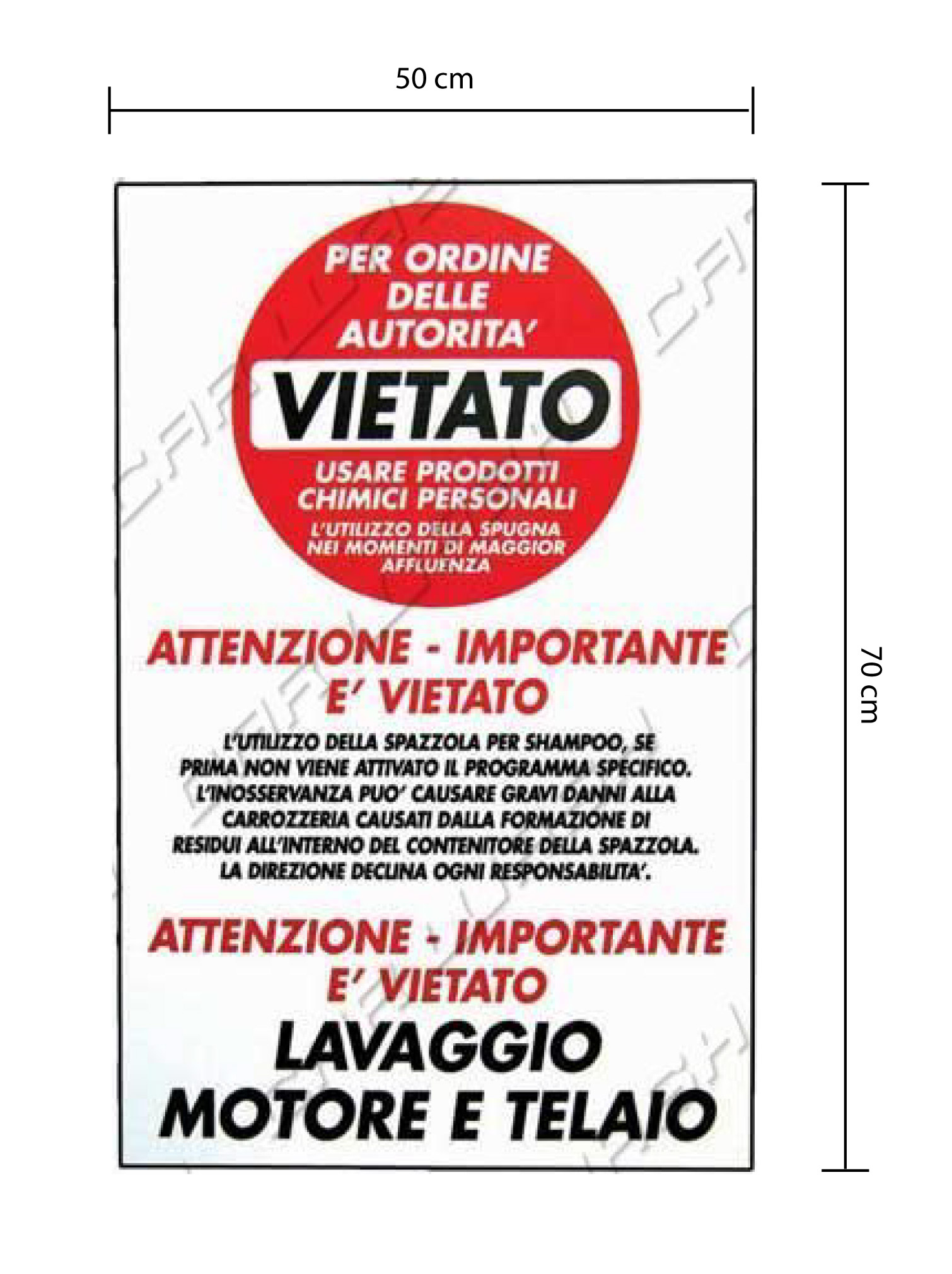 FORBIDDEN adhesive motor wash and personal chemical products. Can be positioned on tracks and portals.
