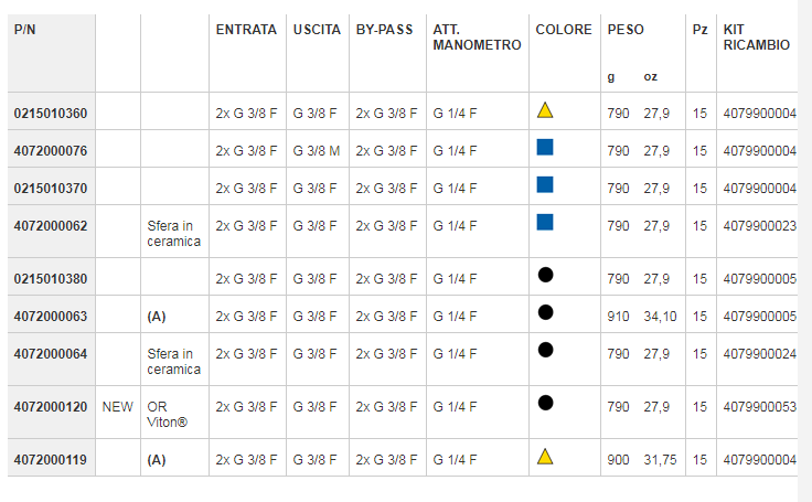 Regulation valve with automatic by-pass 40 liters 250 bar