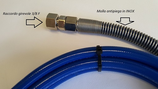 Complete with 2 swivel fittings and an anti-crease spring in stainless steel