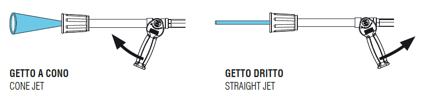 By acting on the knob it is possible to mow the geometry of the jet from conical to straight