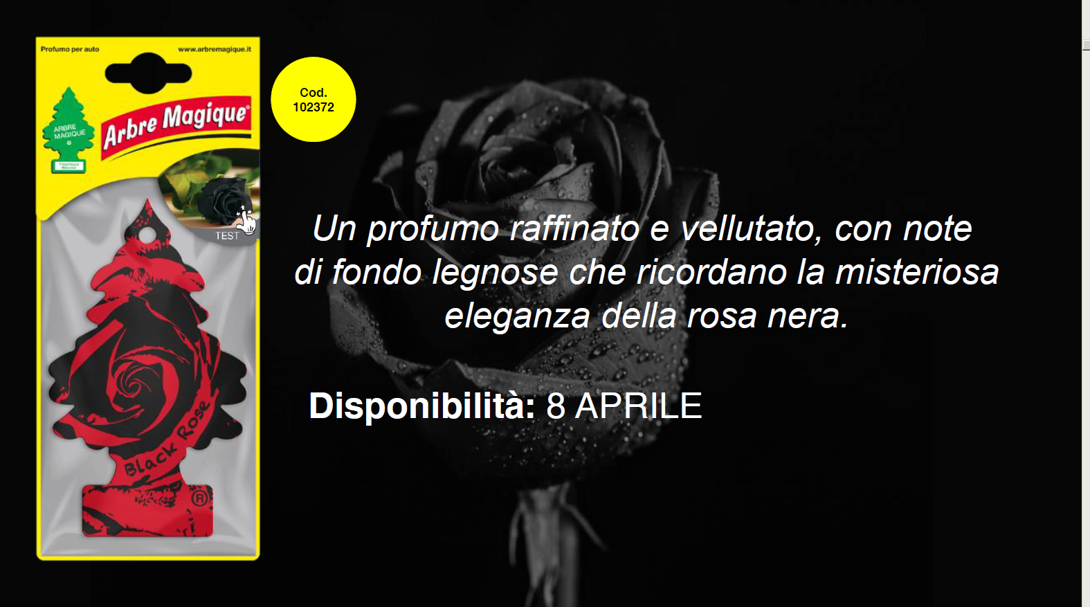 A refined and velvety perfume, with woody base notes reminiscent of the mysterious elegance of the black rose.