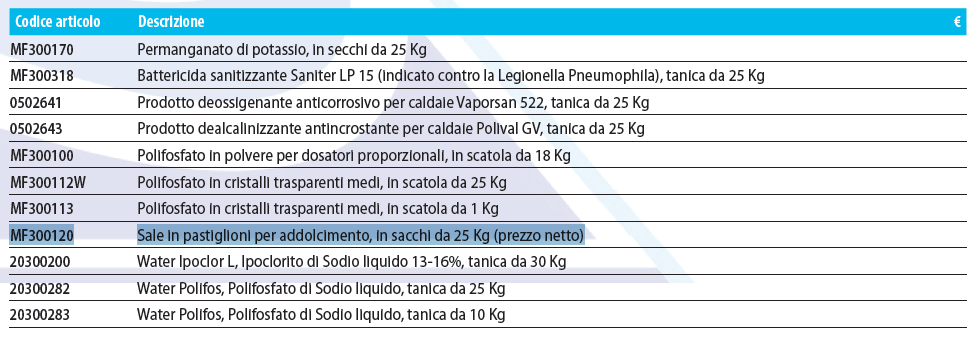 Salt in pastiglioni for softening,...