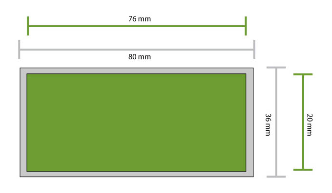 Display dimensions: 76x20mm