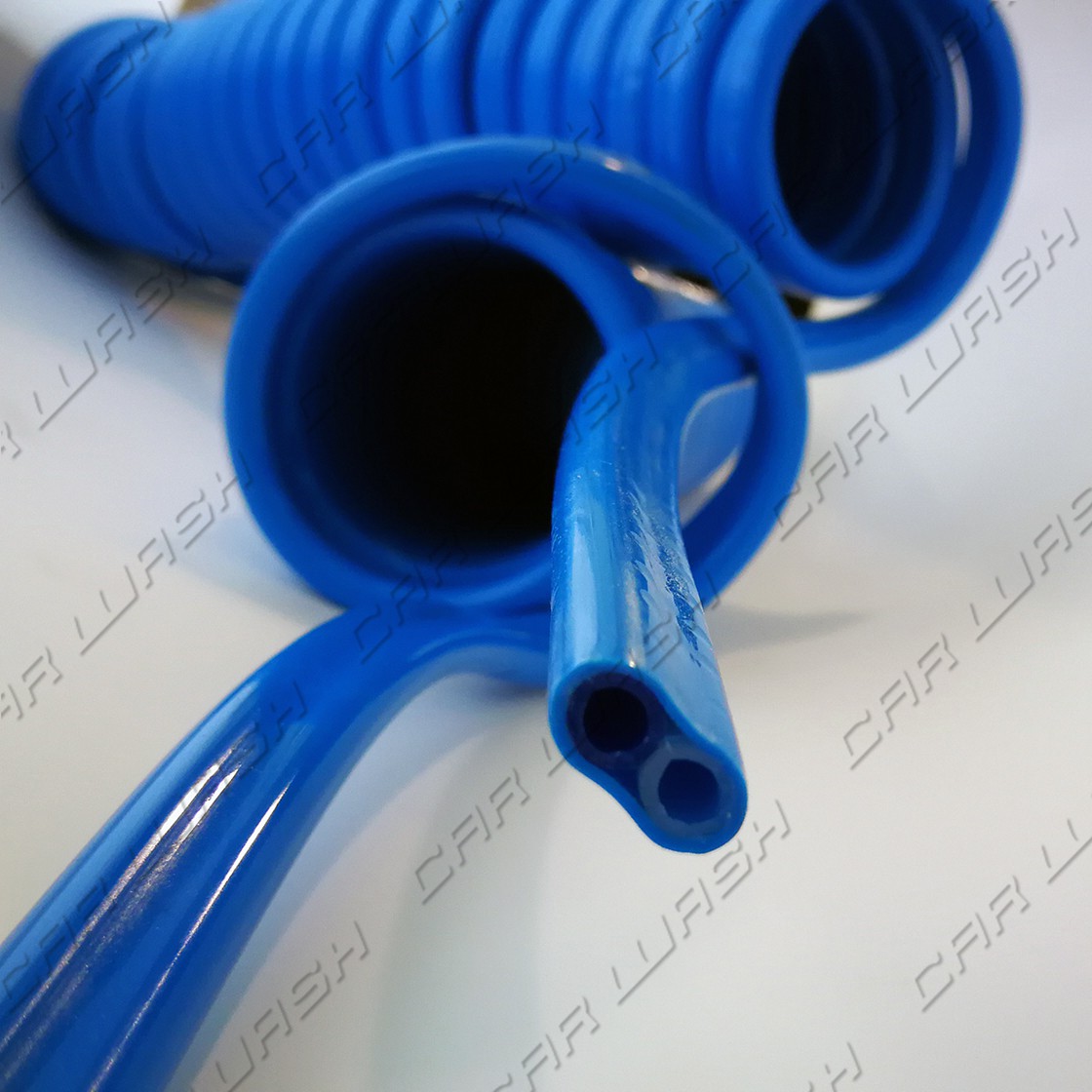 DOUBLE spiral hose resistant to acid and alkaline products. Two coupled tubes for two services (perfume – detergent, etc ..).