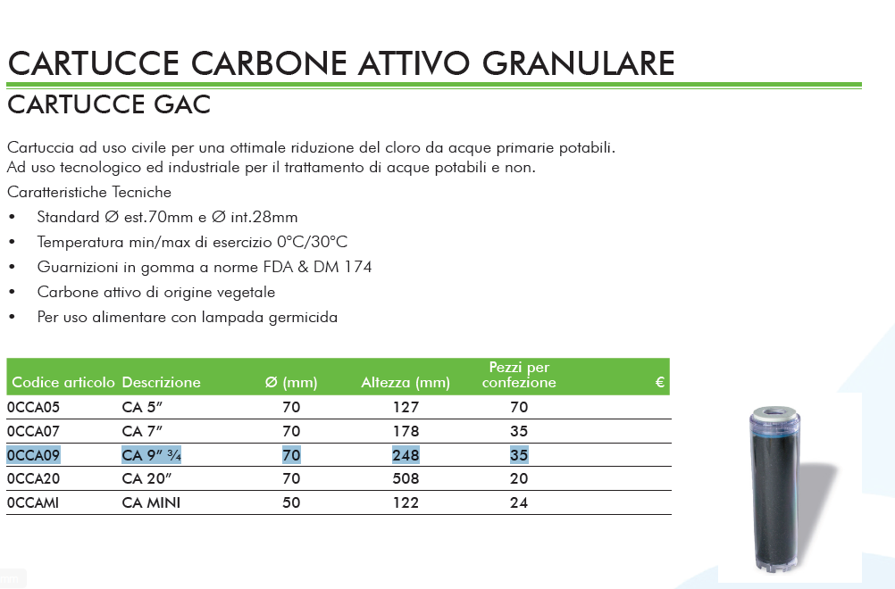 Cartridge for civil use for optimal reduction of chlorine from potable primary water.