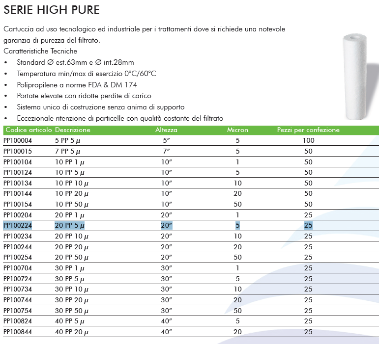Cartridge for technological and industrial use for treatments where a considerable guarantee of purity of the filtrate is required.