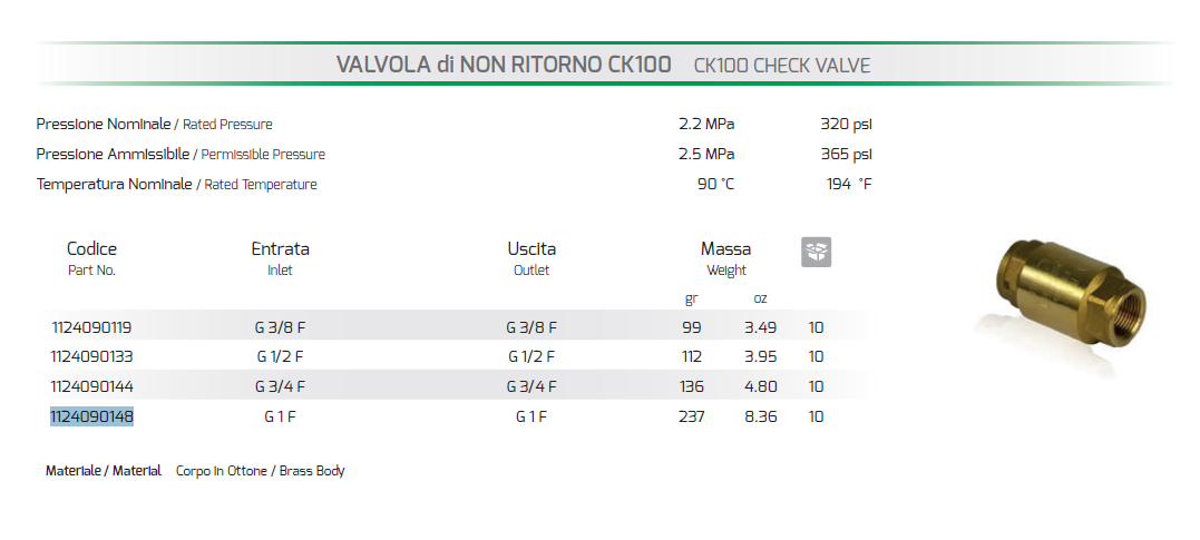 CK100 non-return valveBrass body