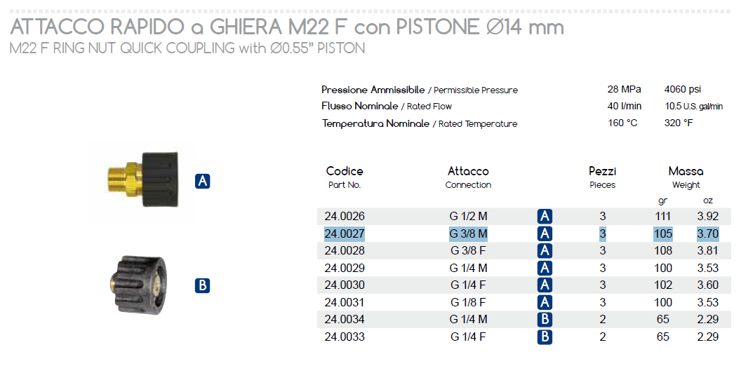 Flusso Nominale 40 l/min 10.5 U.S. gal/min