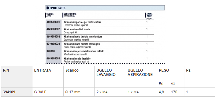 smontati, n°2+1 pz. per pompa da 15 a 20 l/min - (4 ÷ 5.3 USGpm)