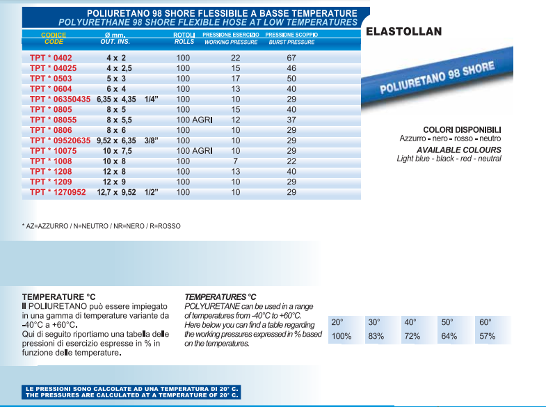 La pressione di utilizzo viene calcolata ad una temperatura di 20°, al variare della temperatura varierà anche la resistenza alla pressione del tubo.