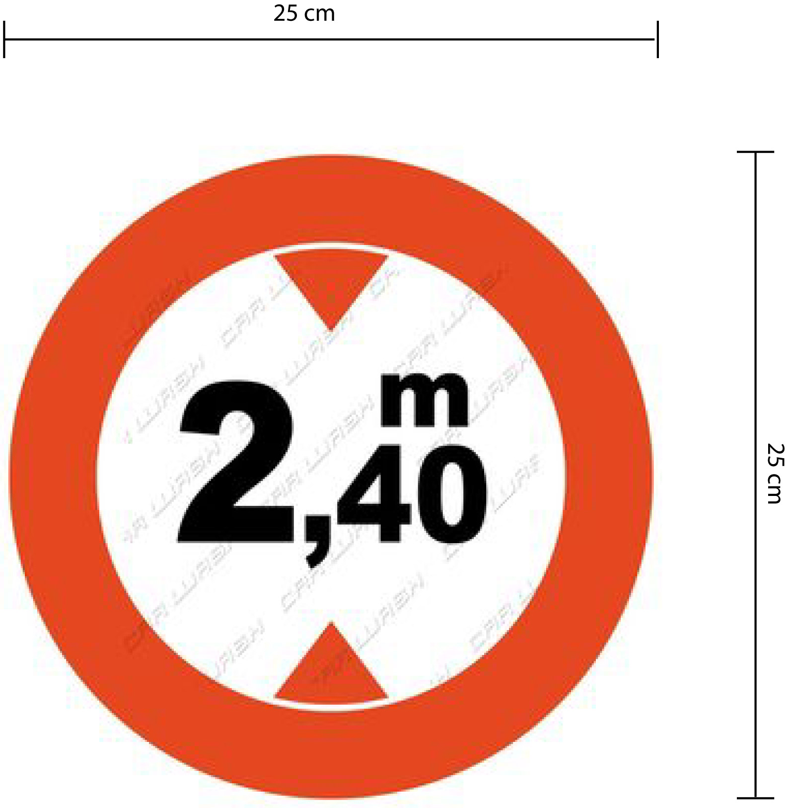 Segnale di divieto adesivo indicante limite massimo di altezza veicoli 2,40 m