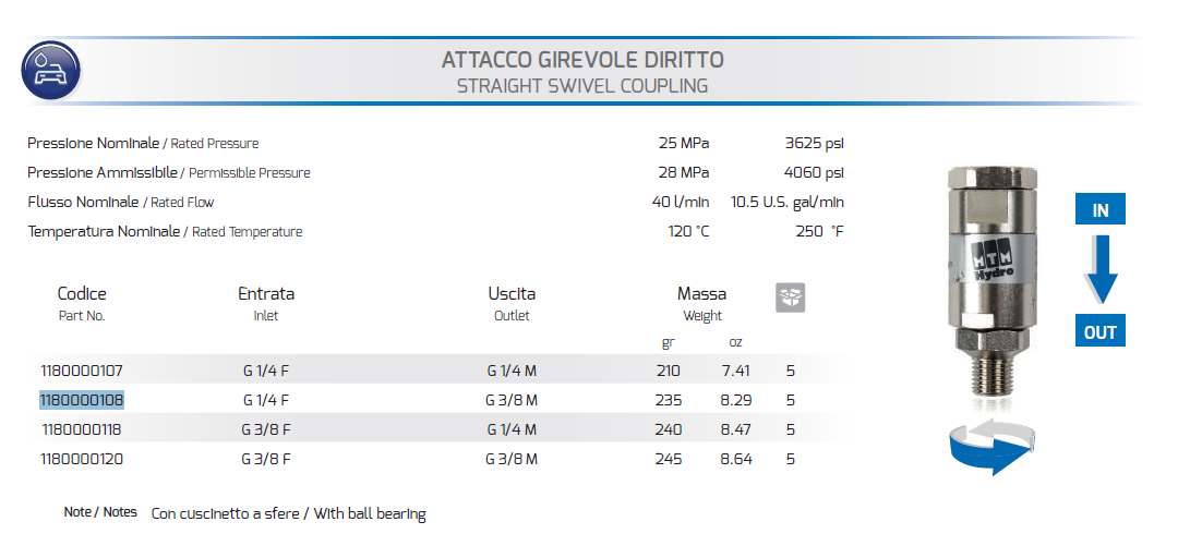 Attacco girevole dirittoMateriale...