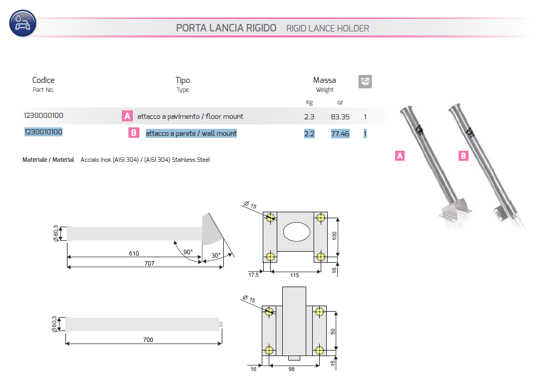 Bocchetta terminale per aspiratori fissi e carrellati Per tubo diametro...