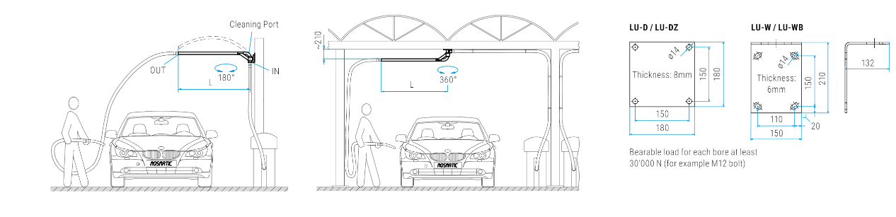Braccio girevole per aspiratori/soffiatori. Permette di mantenere i tubi flessibili puliti e sollevati da terra rendendo più facile e più igienica l’aspirazione della vettura.