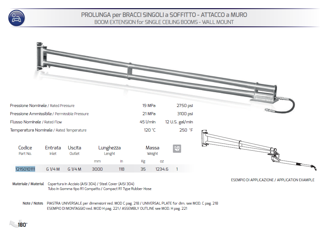 Prolunga per bracci singoli a soffitto