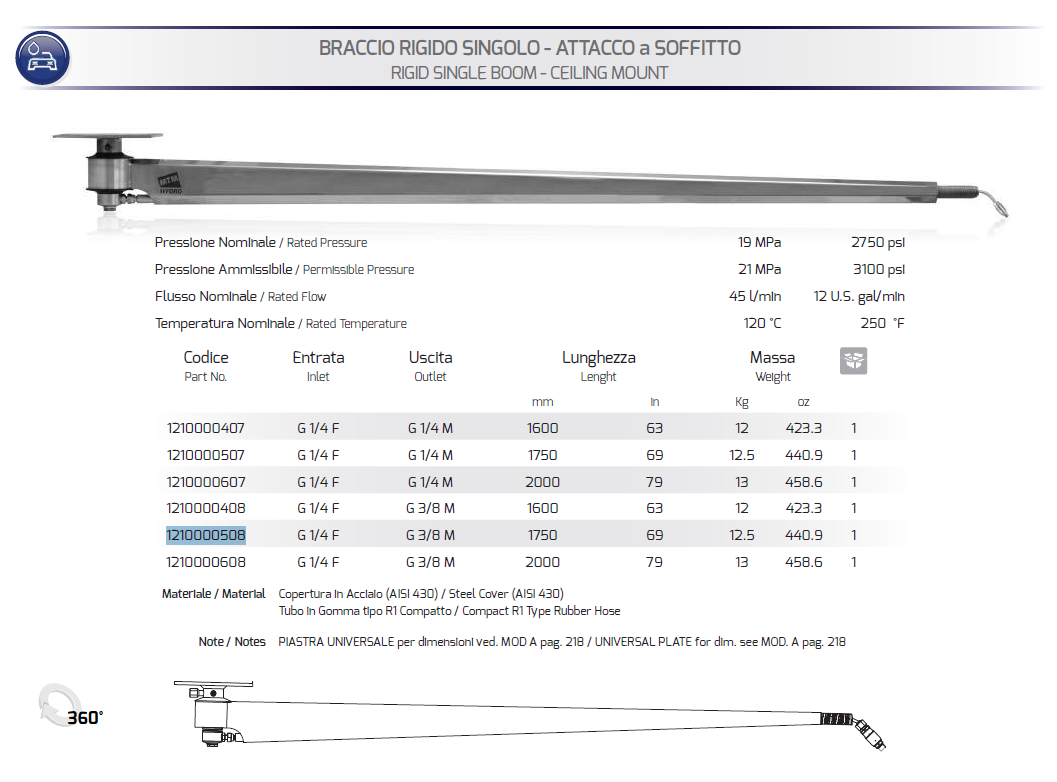 Attacchi: ingresso G ¼ F – Uscita G 3/8 M