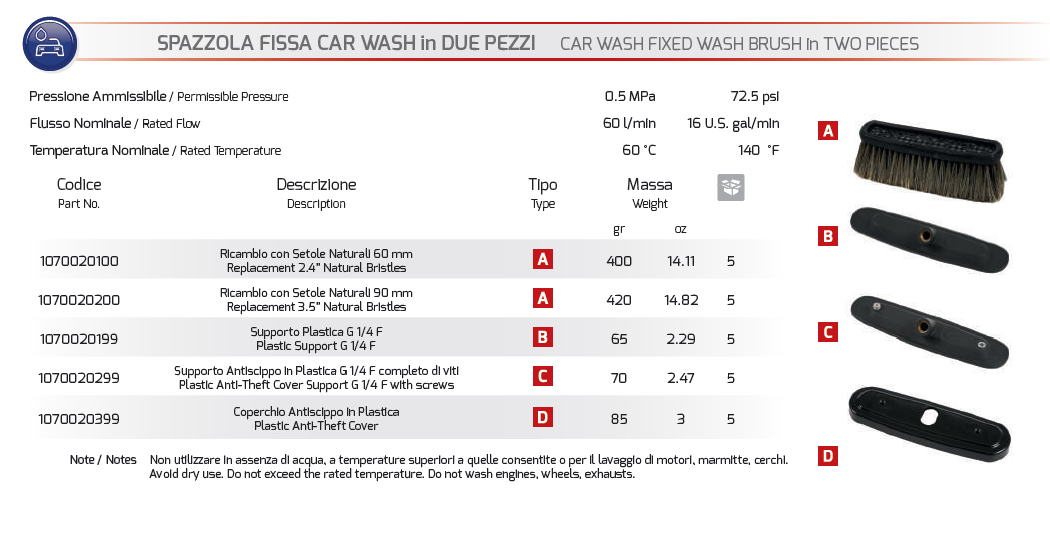 Pressione Ammissibile 0.5 MPa 72.5 psi