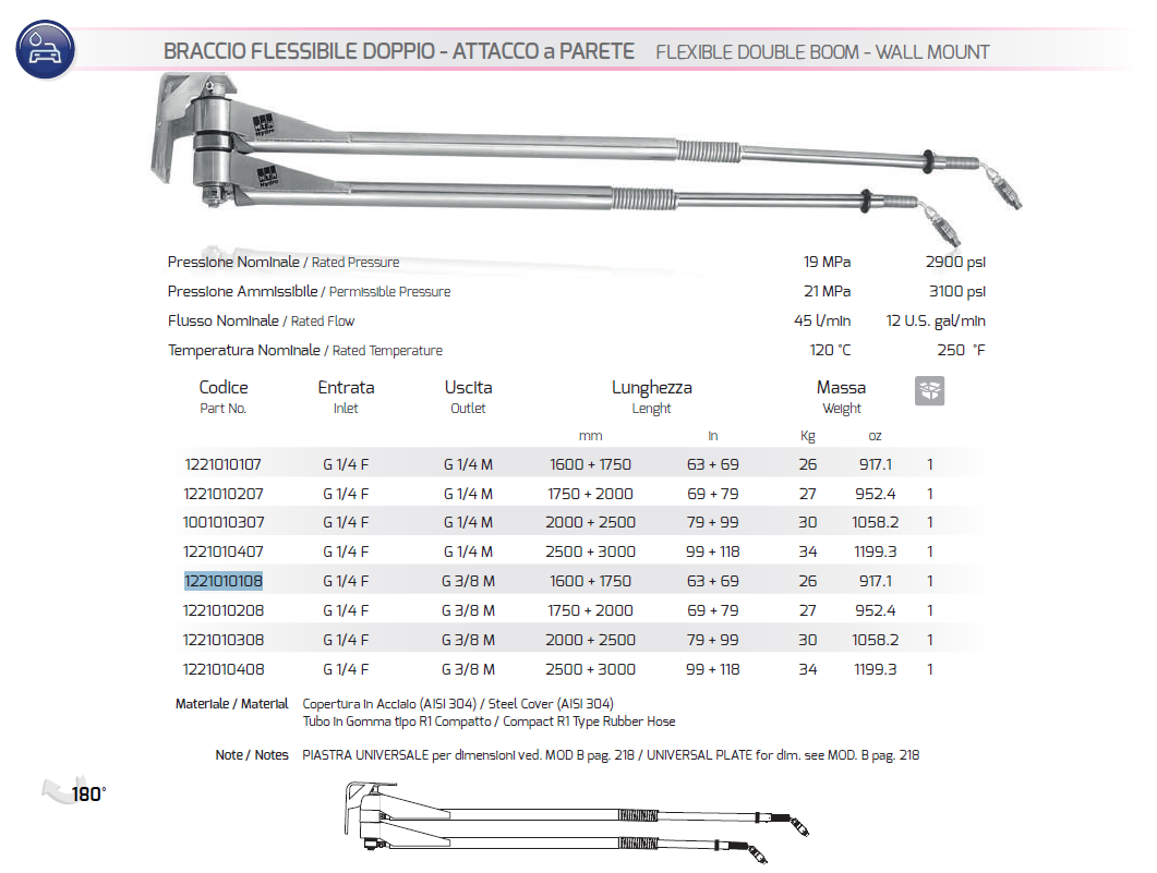 Attacchi: ingresso G ¼ F – Uscita G 3/8 M