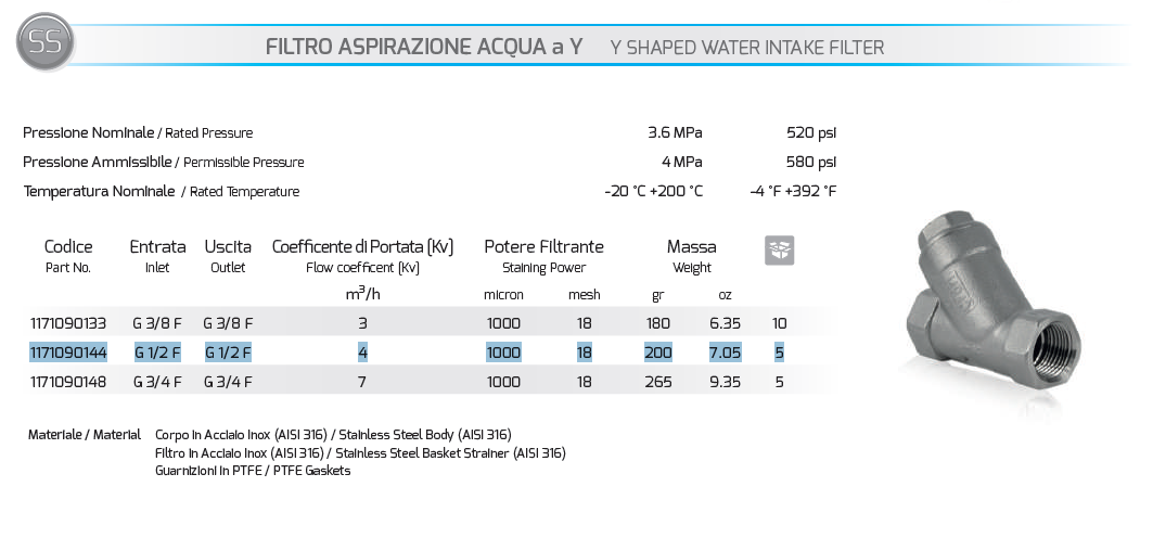 Attacchi: ingresso G 1/2 F – Uscita G 1/2 F