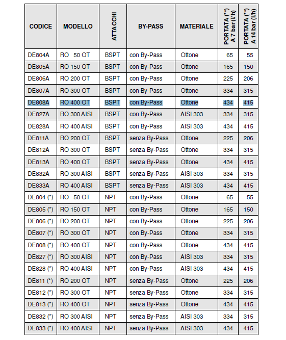 Attacchi ingresso uscita 3/8” F BSPT (o NPT a richiesta)