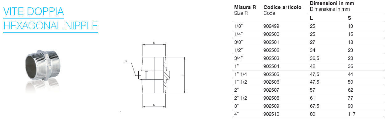 Raccordo idraulico in acciaio Inox, nipplo Ridotto Maschio - Maschio 1/2 ‘’ – 1/4 ’’