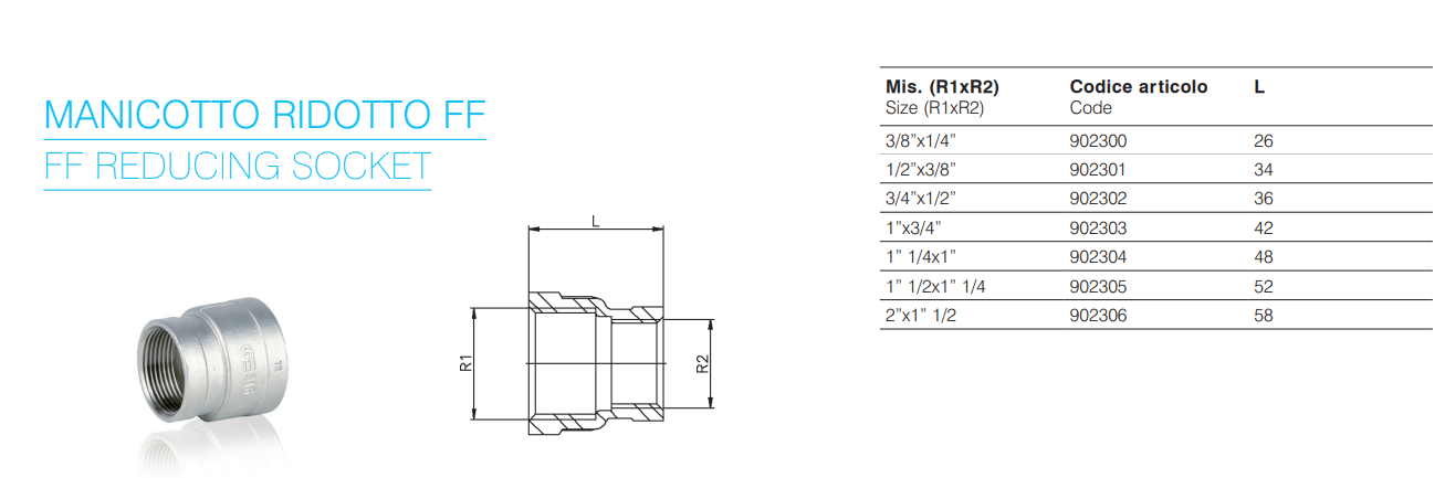 Raccordo idraulico in acciaio Inox, riduzione Femmina 1/4" Femmina 3/8"