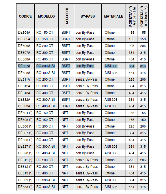 A palette, per sistemi a osmosi inversa, con attacco motor a fascetta. In acciaio AISI 303, con by-pass, attacchi ingresso uscita 3/8” F BSPT (o NPT a richiesta).