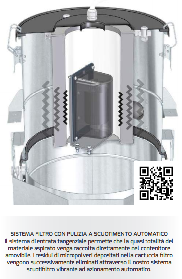 Cartuccia filtrante per aspiratore Kaster a pulizia automatica.