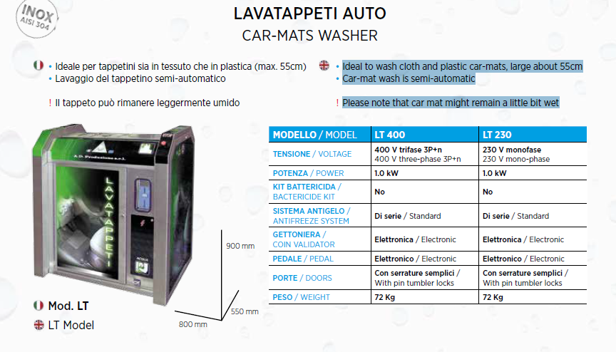 Lavatappeti LT gettoniera elettronica RM5 400v