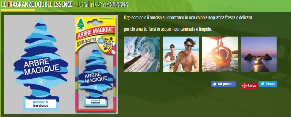 ARBRE MAGIQUE® è il deodorante per auto più venduto al mondo. L'unico che ti offre una scelta così ampia e che garantisce 7 settimane di naturale freschezza. Per una emanazione del profumo duratura e costante segui le istruzioni riportate sulla bustina.