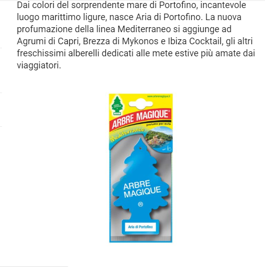 Dai colori del sorprendente mare di Portofino, incantevole luogo marittimo ligure, nasce Aria di Portofino. La nuova profumazione della linea Mediterraneo si aggiunge ad Agrumi di Capri, Brezza di Mykonos e Ibiza Cocktail, gli altri freschissimi alberelli dedicati alle mete estive più amate dai viaggiatori.